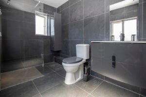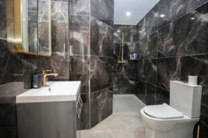 Light fitting, Walk in shower, wall tiling, floor tiling, W.C., W.H.B.,